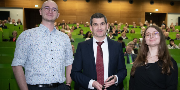 Überreicht wurde der Preis von den Fachschaftsratsvorsitzenden Edith Marie Wollbrink und Moritz Westerheide.
