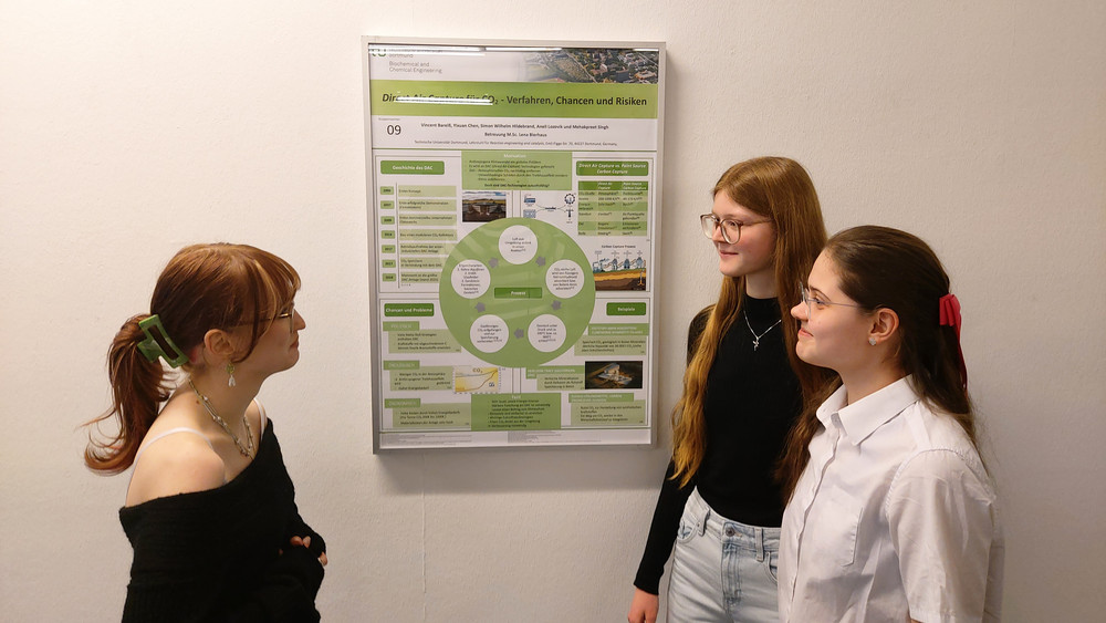 Auf den dritten Platz schafften es das Poster „Direct Air Capture für CO2 - Verfahren, Chancen und Risiken“ von Vincent Bareiß, Yixuan Chen, Simon Wilhelm Hildebrand, Aneli Lozovik und Mehakpreet Singh.